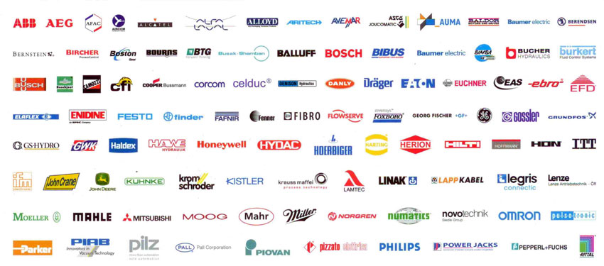 pneumatické prvky, hydraulické prvky, šroubení, spojovací materiál, elektronické řídicí karty, řetězy, pásy, elektronické díly, armatury, měřicí a regulační prvky, čerpadla, motory, hadice, trubky, magnetické fólie, magnety, fitinky a další.