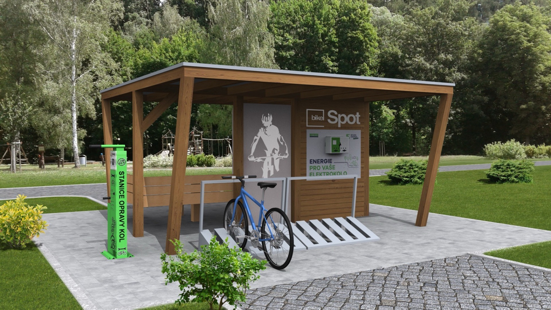 Zázemí pro cyklisty – relaxačně-servisní přístřešek . Přímo na cyklostezce poskytne kryté osvětlené místo pro odpočinek, možnost servisu kola, dobití elektrokola nebo mobilního telefonu, prostřednictvím interaktivního displeje bude informovat o novinkách a turistických nabídkách. Zvyšte atraktivitu své destinace pomocí prvku Smart City. Anti-vandal provedení, ošetřeno hydrofobním nano nátěrem. Možnost FVE.
